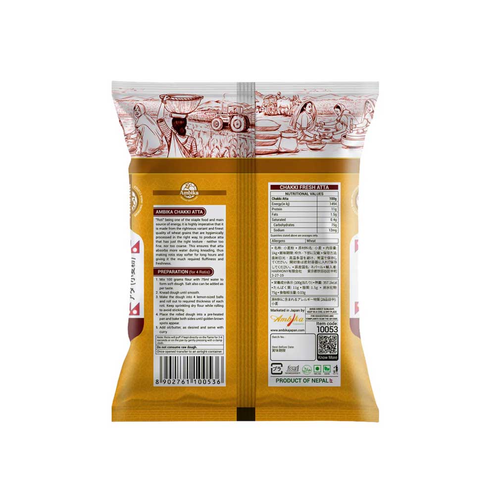Chakki Fresh Atta (Nepal) is 100% natural, unadulterated, and made from premium quality whole wheat grains. It is hygienically packed and free from artificial colour, flavour & preservatives.